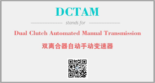 上述内容是“Dual Clutch Automated Manual Transmission”作为“DCTAM”的缩写,解释为“双离合器自动手动变速器”时的信息,以及英文缩略词DCTAM所代表的英文单词,其对应的中文拼音、详细解释以及在英文中的流行度和相关分类、应用领域及应用示例等。