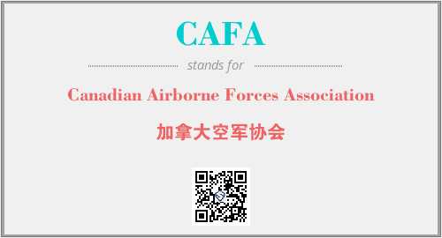 上述内容是“Canadian Airborne Forces Association”作为“CAFA”的缩写,解释为“加拿大空军协会”时的信息,以及英文缩略词CAFA所代表的英文单词,其对应的中文拼音、详细解释以及在英文中的流行度和相关分类、应用领域及应用示例等。