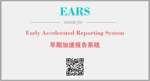 英文缩略词“EARS”经常作为“Early Accelerated Reporting System”的英文缩写来使用,中文表示:“早期加速报告系统”。本文将详细介绍英文缩写词EARS所代表英文单词,其对应的中文拼音、详细解释以及在英语中的流行度。此外,还有关于缩略词EARS的分类、应用领域及相关应用示例等。