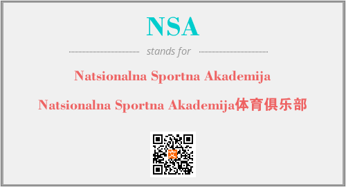 上述内容是“Natsionalna Sportna Akademija”作为“NSA”的缩写,解释为“Natsionalna Sportna Akademija体育俱乐部”时的信息,以及英文缩略词NSA所代表的英文单词,其对应的中文拼音、详细解释以及在英文中的流行度和相关分类、应用领域及应用示例等。