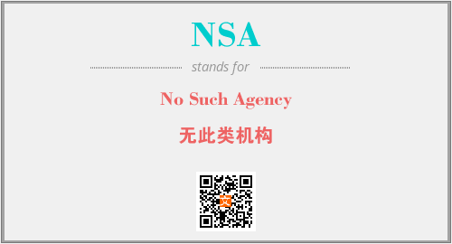 英文缩略词“NSA”经常作为“No Such Agency”的英文缩写来使用,中文表示:“无此类机构”。本文将详细介绍英文缩写词NSA所代表英文单词,其对应的中文拼音、详细解释以及在英语中的流行度。此外,还有关于缩略词NSA的分类、应用领域及相关应用示例等。