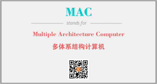 上述内容是“Multiple Architecture Computer”作为“MAC”的缩写,解释为“多体系结构计算机”时的信息,以及英文缩略词MAC所代表的英文单词,其对应的中文拼音、详细解释以及在英文中的流行度和相关分类、应用领域及应用示例等。