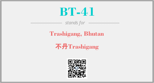 英文缩略词“BT-41”经常作为“Trashigang, Bhutan”的英文缩写来使用,中文表示:“不丹Trashigang”。本文将详细介绍英文缩写词BT-41所代表英文单词,其对应的中文拼音、详细解释以及在英语中的流行度。此外,还有关于缩略词BT-41的分类、应用领域及相关应用示例等。