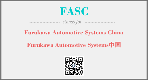 英文缩略词“FASC”经常作为“Furukawa Automotive Systems China”的英文缩写来使用,中文表示:“Furukawa Automotive Systems中国”。本文将详细介绍英文缩写词FASC所代表英文单词,其对应的中文拼音、详细解释以及在英语中的流行度。此外,还有关于缩略词FASC的分类、应用领域及相关应用示例等。
