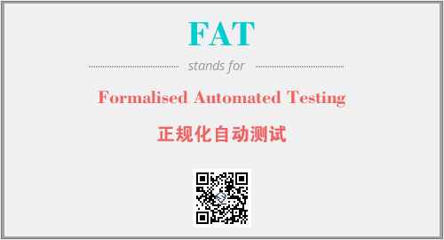 上述内容是“Formalised Automated Testing”作为“FAT”的缩写,解释为“正规化自动测试”时的信息,以及英文缩略词FAT所代表的英文单词,其对应的中文拼音、详细解释以及在英文中的流行度和相关分类、应用领域及应用示例等。