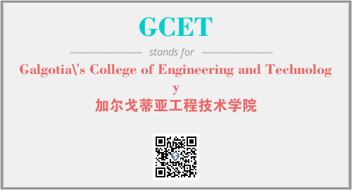 上述内容是“Galgotia\'s College of Engineering and Technology”作为“GCET”的缩写,解释为“加尔戈蒂亚工程技术学院”时的信息,以及英文缩略词GCET所代表的英文单词,其对应的中文拼音、详细解释以及在英文中的流行度和相关分类、应用领域及应用示例等。