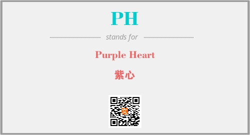 上述内容是“Purple Heart”作为“PH”的缩写,解释为“紫心”时的信息,以及英文缩略词PH所代表的英文单词,其对应的中文拼音、详细解释以及在英文中的流行度和相关分类、应用领域及应用示例等。