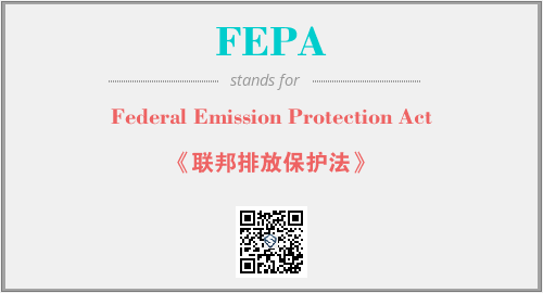 上述内容是“Federal Emission Protection Act”作为“FEPA”的缩写,解释为“《联邦排放保护法》”时的信息,以及英文缩略词FEPA所代表的英文单词,其对应的中文拼音、详细解释以及在英文中的流行度和相关分类、应用领域及应用示例等。