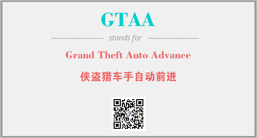 上述内容是“Grand Theft Auto Advance”作为“GTAA”的缩写,解释为“侠盗猎车手自动前进”时的信息,以及英文缩略词GTAA所代表的英文单词,其对应的中文拼音、详细解释以及在英文中的流行度和相关分类、应用领域及应用示例等。