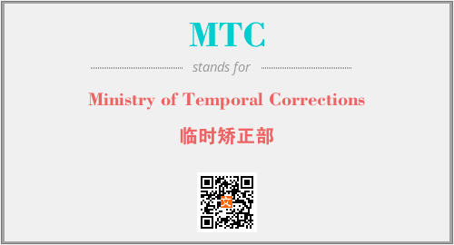 以上为Ministry of Temporal Corrections英文缩略词MTC的中文解释,以及该英文缩写在英语的流行度、分类和应用领域方面的信息。