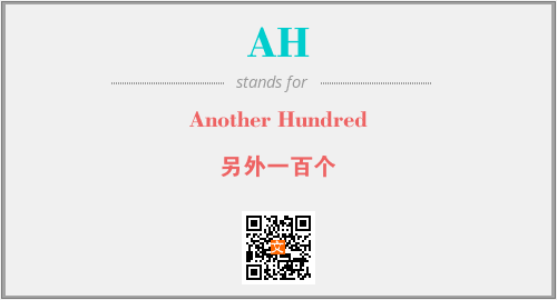 英文缩略词“AH”经常作为“Another Hundred”的英文缩写来使用,中文表示:“另外一百个”。本文将详细介绍英文缩写词AH所代表英文单词,其对应的中文拼音、详细解释以及在英语中的流行度。此外,还有关于缩略词AH的分类、应用领域及相关应用示例等。