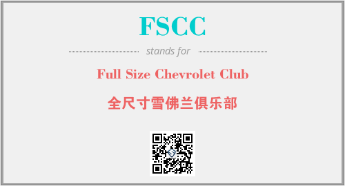 上述内容是“Full Size Chevrolet Club”作为“FSCC”的缩写,解释为“全尺寸雪佛兰俱乐部”时的信息,以及英文缩略词FSCC所代表的英文单词,其对应的中文拼音、详细解释以及在英文中的流行度和相关分类、应用领域及应用示例等。
