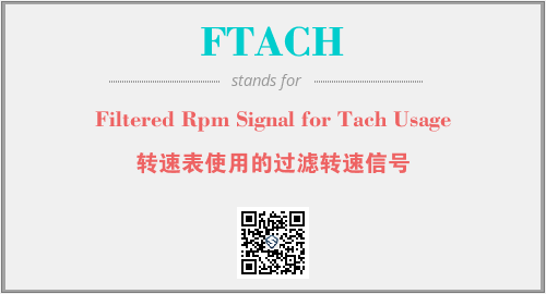 上述内容是“Filtered Rpm Signal for Tach Usage”作为“FTACH”的缩写,解释为“转速表使用的过滤转速信号”时的信息,以及英文缩略词FTACH所代表的英文单词,其对应的中文拼音、详细解释以及在英文中的流行度和相关分类、应用领域及应用示例等。