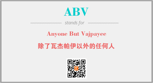 英文缩略词“ABV”经常作为“Anyone But Vajpayee”的英文缩写来使用,中文表示:“除了瓦杰帕伊以外的任何人”。本文将详细介绍英文缩写词ABV所代表英文单词,其对应的中文拼音、详细解释以及在英语中的流行度。此外,还有关于缩略词ABV的分类、应用领域及相关应用示例等。
