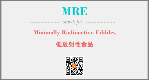 英文缩略词“MRE”经常作为“Minimally Radioactive Edibles”的英文缩写来使用,中文表示:“低放射性食品”。本文将详细介绍英文缩写词MRE所代表英文单词,其对应的中文拼音、详细解释以及在英语中的流行度。此外,还有关于缩略词MRE的分类、应用领域及相关应用示例等。