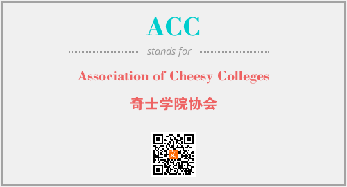 英文缩略词“ACC”经常作为“Association of Cheesy Colleges”的英文缩写来使用,中文表示:“奇士学院协会”。本文将详细介绍英文缩写词ACC所代表英文单词,其对应的中文拼音、详细解释以及在英语中的流行度。此外,还有关于缩略词ACC的分类、应用领域及相关应用示例等。