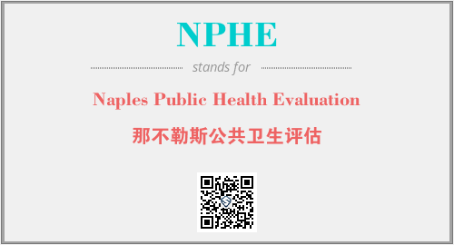 上述内容是“Naples Public Health Evaluation”作为“NPHE”的缩写,解释为“那不勒斯公共卫生评估”时的信息,以及英文缩略词NPHE所代表的英文单词,其对应的中文拼音、详细解释以及在英文中的流行度和相关分类、应用领域及应用示例等。