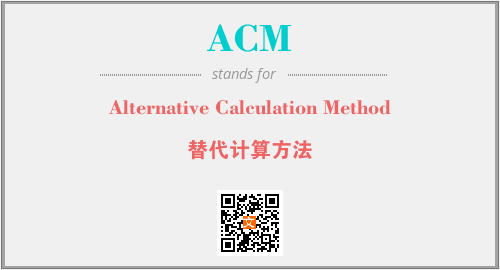 上述内容是“Alternative Calculation Method”作为“ACM”的缩写,解释为“替代计算方法”时的信息,以及英文缩略词ACM所代表的英文单词,其对应的中文拼音、详细解释以及在英文中的流行度和相关分类、应用领域及应用示例等。