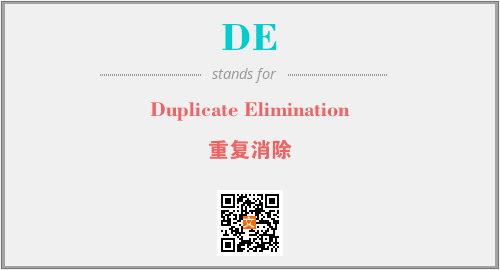 上述内容是“Duplicate Elimination”作为“DE”的缩写,解释为“重复消除”时的信息,以及英文缩略词DE所代表的英文单词,其对应的中文拼音、详细解释以及在英文中的流行度和相关分类、应用领域及应用示例等。