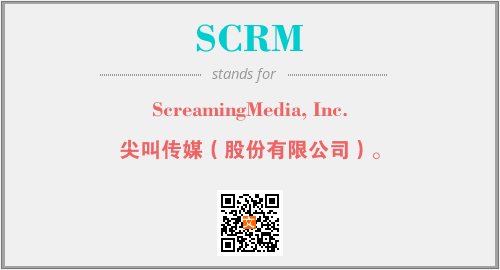 英文缩略词“SCRM”经常作为“ScreamingMedia, Inc.”的英文缩写来使用,中文表示:“尖叫传媒(股份有限公司)。”。本文将详细介绍英文缩写词SCRM所代表英文单词,其对应的中文拼音、详细解释以及在英语中的流行度。此外,还有关于缩略词SCRM的分类、应用领域及相关应用示例等。