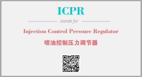 上述内容是“Injection Control Pressure Regulator”作为“ICPR”的缩写,解释为“喷油控制压力调节器”时的信息,以及英文缩略词ICPR所代表的英文单词,其对应的中文拼音、详细解释以及在英文中的流行度和相关分类、应用领域及应用示例等。