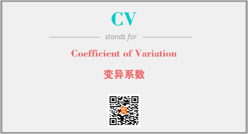 上述内容是“Coefficient of Variation”作为“CV”的缩写,解释为“变异系数”时的信息,以及英文缩略词CV所代表的英文单词,其对应的中文拼音、详细解释以及在英文中的流行度和相关分类、应用领域及应用示例等。