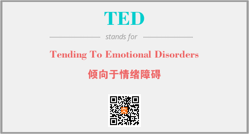 上述内容是“Tending To Emotional Disorders”作为“TED”的缩写,解释为“倾向于情绪障碍”时的信息,以及英文缩略词TED所代表的英文单词,其对应的中文拼音、详细解释以及在英文中的流行度和相关分类、应用领域及应用示例等。