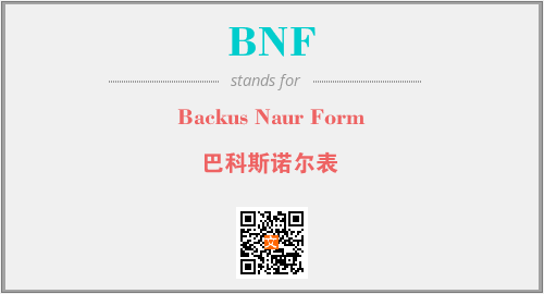 英文缩略词“BNF”经常作为“Backus Naur Form”的英文缩写来使用,中文表示:“巴科斯诺尔表”。本文将详细介绍英文缩写词BNF所代表英文单词,其对应的中文拼音、详细解释以及在英语中的流行度。此外,还有关于缩略词BNF的分类、应用领域及相关应用示例等。