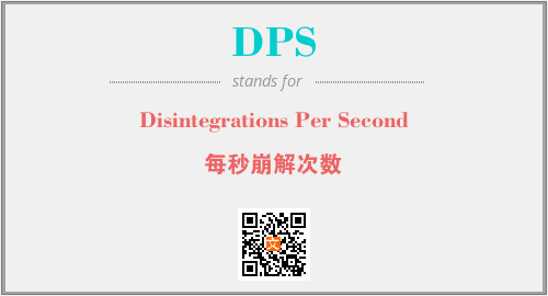 英文缩略词“DPS”经常作为“Disintegrations Per Second”的英文缩写来使用,中文表示:“每秒崩解次数”。本文将详细介绍英文缩写词DPS所代表英文单词,其对应的中文拼音、详细解释以及在英语中的流行度。此外,还有关于缩略词DPS的分类、应用领域及相关应用示例等。
