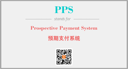 上述内容是“Prospective Payment System”作为“PPS”的缩写,解释为“预期支付系统”时的信息,以及英文缩略词PPS所代表的英文单词,其对应的中文拼音、详细解释以及在英文中的流行度和相关分类、应用领域及应用示例等。