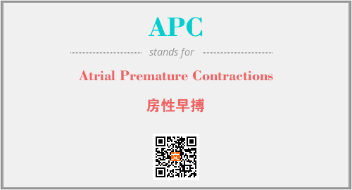 英文缩略词“APC”经常作为“Atrial Premature Contractions”的英文缩写来使用,中文表示:“房性早搏”。本文将详细介绍英文缩写词APC所代表英文单词,其对应的中文拼音、详细解释以及在英语中的流行度。此外,还有关于缩略词APC的分类、应用领域及相关应用示例等。