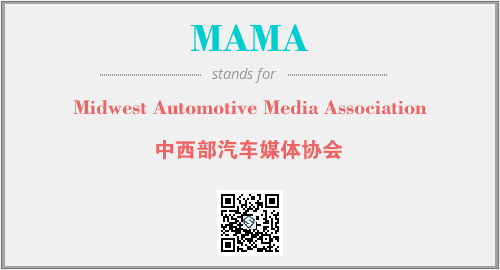 上述内容是“Midwest Automotive Media Association”作为“MAMA”的缩写,解释为“中西部汽车媒体协会”时的信息,以及英文缩略词MAMA所代表的英文单词,其对应的中文拼音、详细解释以及在英文中的流行度和相关分类、应用领域及应用示例等。