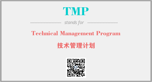 英文缩略词“TMP”经常作为“Technical Management Program”的英文缩写来使用,中文表示:“技术管理计划”。本文将详细介绍英文缩写词TMP所代表英文单词,其对应的中文拼音、详细解释以及在英语中的流行度。此外,还有关于缩略词TMP的分类、应用领域及相关应用示例等。