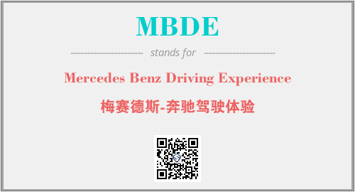 英文缩略词“MBDE”经常作为“Mercedes Benz Driving Experience”的英文缩写来使用,中文表示:“梅赛德斯-奔驰驾驶体验”。本文将详细介绍英文缩写词MBDE所代表英文单词,其对应的中文拼音、详细解释以及在英语中的流行度。此外,还有关于缩略词MBDE的分类、应用领域及相关应用示例等。