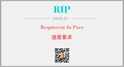 以上为Requiescat In Pace英文缩略词RIP的中文解释,以及该英文缩写在英语的流行度、分类和应用领域方面的信息。