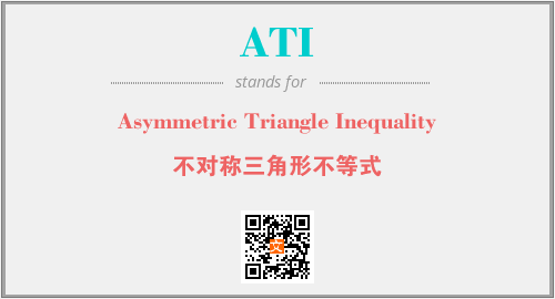 上述内容是“Asymmetric Triangle Inequality”作为“ATI”的缩写,解释为“不对称三角形不等式”时的信息,以及英文缩略词ATI所代表的英文单词,其对应的中文拼音、详细解释以及在英文中的流行度和相关分类、应用领域及应用示例等。