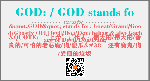 "GOD: / GOD stands fo - "E;“上帝”;代表:伟大的/伟大的/善良的/可怕的老恶魔/狗/傻瓜&;还有魔鬼/狗/粪便的垃圾 ." [引用日期]. <https://www.suoxie123.com/a/110D8.html>.