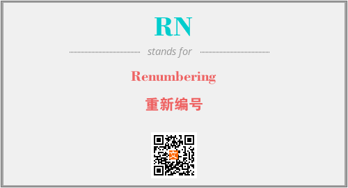 英文缩略词“RN”经常作为“Renumbering”的英文缩写来使用,中文表示:“重新编号”。本文将详细介绍英文缩写词RN所代表英文单词,其对应的中文拼音、详细解释以及在英语中的流行度。此外,还有关于缩略词RN的分类、应用领域及相关应用示例等。
