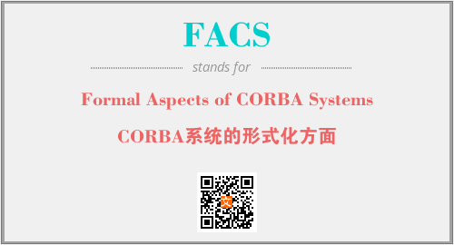 英文缩略词“FACS”经常作为“Formal Aspects of CORBA Systems”的英文缩写来使用,中文表示:“CORBA系统的形式化方面”。本文将详细介绍英文缩写词FACS所代表英文单词,其对应的中文拼音、详细解释以及在英语中的流行度。此外,还有关于缩略词FACS的分类、应用领域及相关应用示例等。