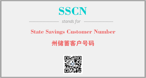 上述内容是“State Savings Customer Number”作为“SSCN”的缩写,解释为“州储蓄客户号码”时的信息,以及英文缩略词SSCN所代表的英文单词,其对应的中文拼音、详细解释以及在英文中的流行度和相关分类、应用领域及应用示例等。