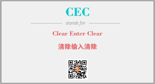 英文缩略词“CEC”经常作为“Clear Enter Clear”的英文缩写来使用,中文表示:“清除输入清除”。本文将详细介绍英文缩写词CEC所代表英文单词,其对应的中文拼音、详细解释以及在英语中的流行度。此外,还有关于缩略词CEC的分类、应用领域及相关应用示例等。