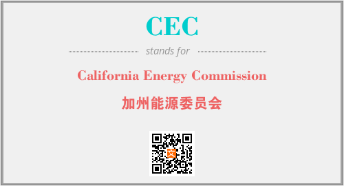 上述内容是“California Energy Commission”作为“CEC”的缩写,解释为“加州能源委员会”时的信息,以及英文缩略词CEC所代表的英文单词,其对应的中文拼音、详细解释以及在英文中的流行度和相关分类、应用领域及应用示例等。