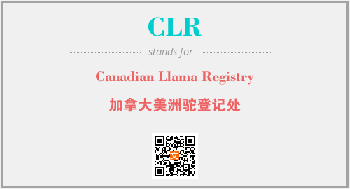 上述内容是“Canadian Llama Registry”作为“CLR”的缩写,解释为“加拿大美洲驼登记处”时的信息,以及英文缩略词CLR所代表的英文单词,其对应的中文拼音、详细解释以及在英文中的流行度和相关分类、应用领域及应用示例等。