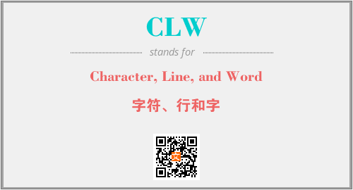 上述内容是“Character, Line, and Word”作为“CLW”的缩写,解释为“字符、行和字”时的信息,以及英文缩略词CLW所代表的英文单词,其对应的中文拼音、详细解释以及在英文中的流行度和相关分类、应用领域及应用示例等。