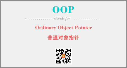 上述内容是“Ordinary Object Pointer”作为“OOP”的缩写,解释为“普通对象指针”时的信息,以及英文缩略词OOP所代表的英文单词,其对应的中文拼音、详细解释以及在英文中的流行度和相关分类、应用领域及应用示例等。