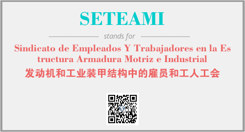 上述内容是“Sindicato de Empleados Y Trabajadores en la Estructura Armadura Motriz e Industrial”作为“SETEAMI”的缩写,解释为“发动机和工业装甲结构中的雇员和工人工会”时的信息,以及英文缩略词SETEAMI所代表的英文单词,其对应的中文拼音、详细解释以及在英文中的流行度和相关分类、应用领域及应用示例等。