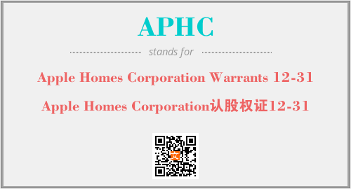 上述内容是“Apple Homes Corporation Warrants 12-31”作为“APHC”的缩写,解释为“Apple Homes Corporation认股权证12-31”时的信息,以及英文缩略词APHC所代表的英文单词,其对应的中文拼音、详细解释以及在英文中的流行度和相关分类、应用领域及应用示例等。
