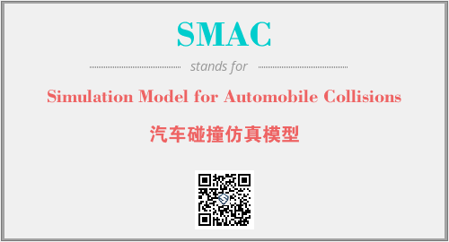 上述内容是“Simulation Model for Automobile Collisions”作为“SMAC”的缩写,解释为“汽车碰撞仿真模型”时的信息,以及英文缩略词SMAC所代表的英文单词,其对应的中文拼音、详细解释以及在英文中的流行度和相关分类、应用领域及应用示例等。