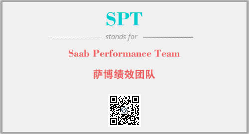上述内容是“Saab Performance Team”作为“SPT”的缩写,解释为“萨博绩效团队”时的信息,以及英文缩略词SPT所代表的英文单词,其对应的中文拼音、详细解释以及在英文中的流行度和相关分类、应用领域及应用示例等。