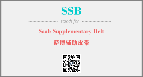 上述内容是“Saab Supplementary Belt”作为“SSB”的缩写,解释为“萨博辅助皮带”时的信息,以及英文缩略词SSB所代表的英文单词,其对应的中文拼音、详细解释以及在英文中的流行度和相关分类、应用领域及应用示例等。